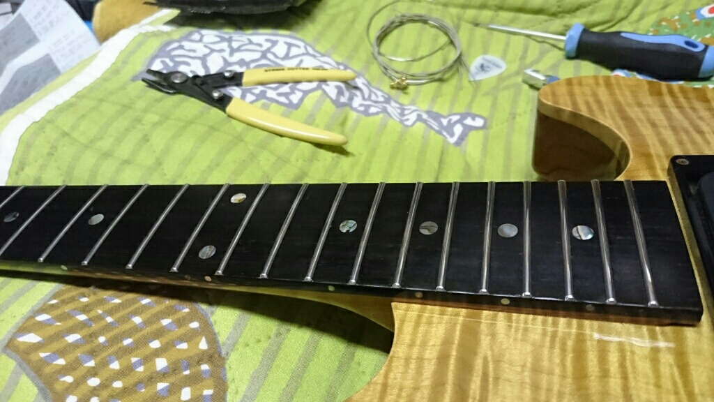 ついでに弦交換と指板の清掃もやっとかないとね。