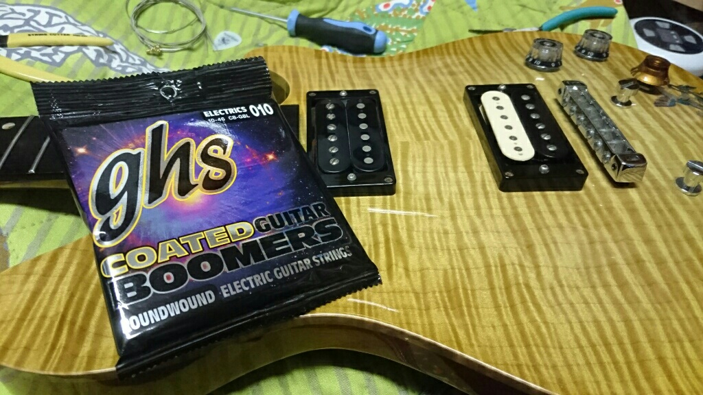 後、ピックアップの調整と、弦もGHS / Boomersから従来通りERNIE BALLに変更。
