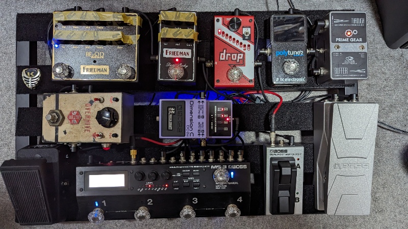 前のサブボードではクランチ系が弱かったものの、TONEX Pedal導入でその部分をカバーしつつ、パッチごとに細かい音の調整も可能になったので、かなり使いやすく頼もしいボードになりました。
