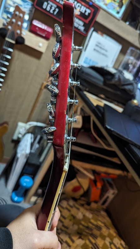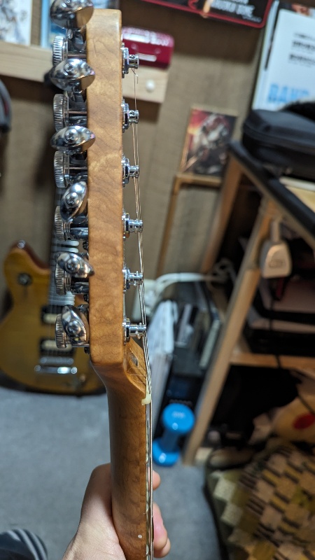 元々設計でGOTOHのチューナーを用いて1,2弦が低いものが採用されてはいるものの、個体差でテンション不足が如実に露呈してしまった形ですね。