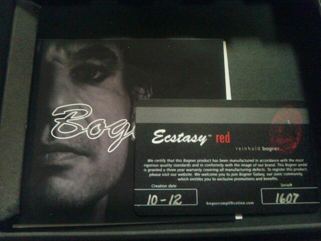 箱の中はエフェクターの他にボグナー・ラインハルトの厳つい顔が載ってる説明書(UberschallとEcstasy Blue、Ecstasy Red共通)とシリアルカード、上蓋の裏側にはゴム足が付属してました。