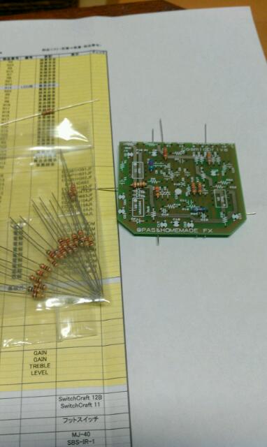 基盤の大きさに対して結構抵抗の数が多く、選別するのにかなり難儀しました。