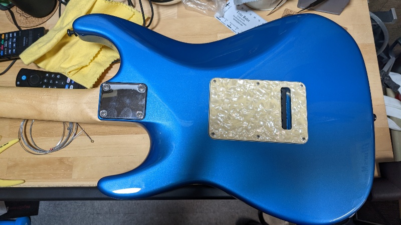 結局FREEDOM製のネックプレートを取り付けていた画像を残すことがありませんでしたが、無事元のプレートに交換。