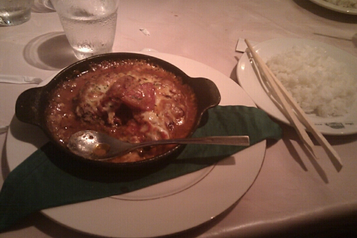小生が頼んだのはチーズとトマトをふんだんに使用した煮込みハンバーグ。