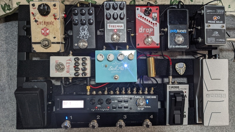 サブボードでもどちらかというと軽い歪みに使用してますが、歪みのキメの細かさやノイズの少なさ、ミュートした時の音のキレなどドンズバな音色だし、音も個性がそこまで強くないので使用するアンプを選ばないのも気に入っているポイントです。