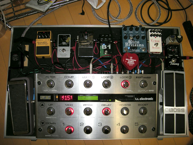 う〜ん、でもこれはこれで通したサウンドは気に入ってるんでコイツを素直にブースターとして使用し、使用中のTimmyをバッファ・アンプとして使用する事を思いつきました。