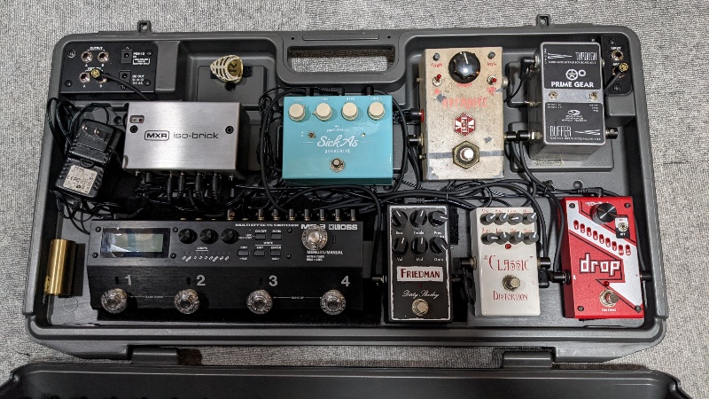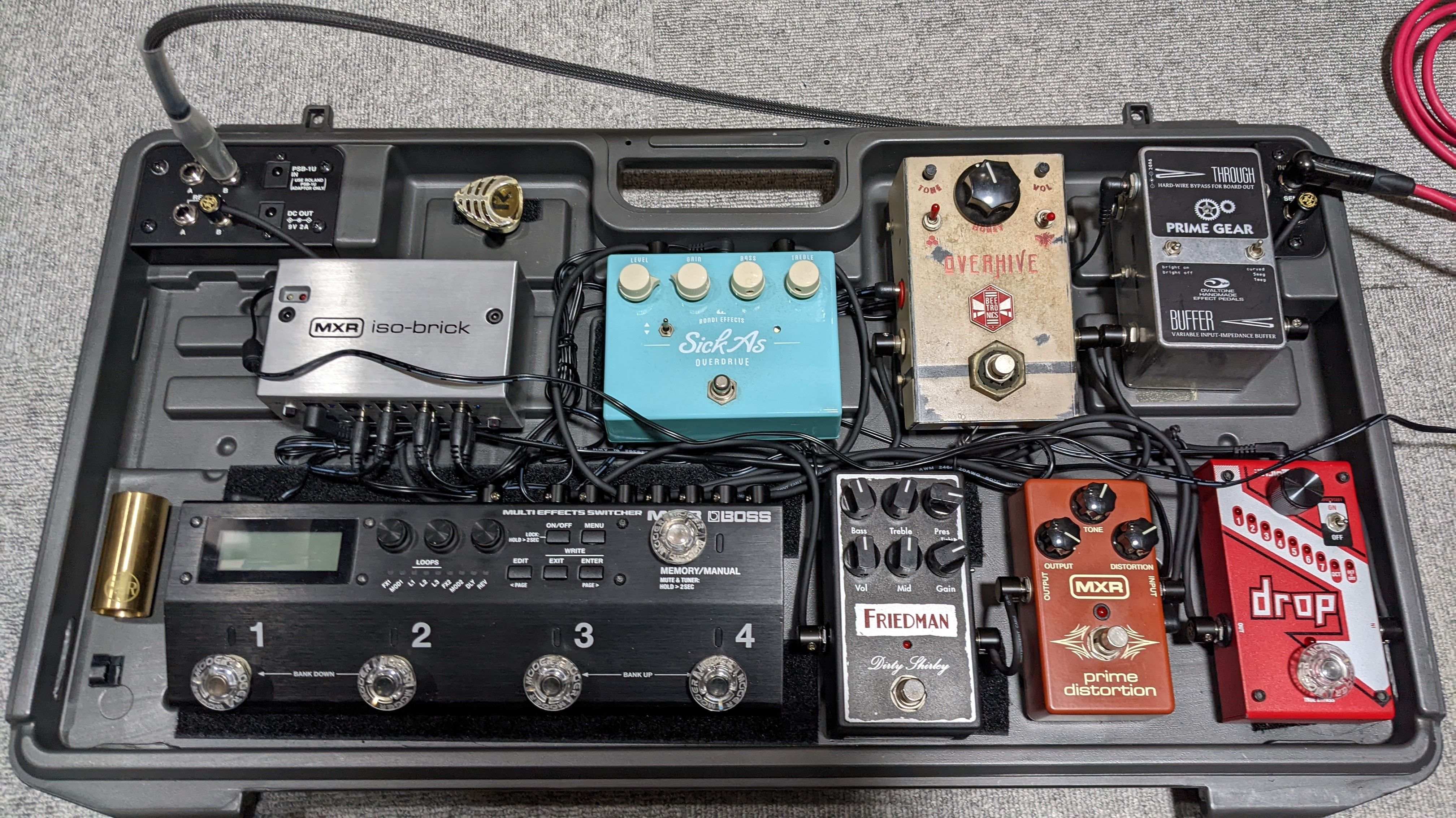 そこで閃いたのがお気に入りだけど現状ボードに入っていないSick Asを新たに入れ込み、且つハイゲイン用とミッドゲイン用で置いているペダルを直列に1ループに入れ込んでしまおうというものです。