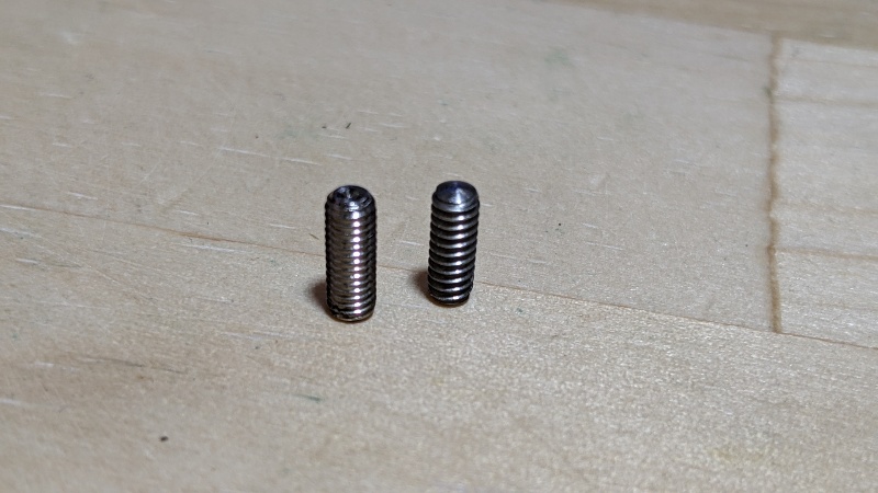 早速1本ずつイモネジの取替をやりましたが、それぞれ六角レンチのサイズが違っていてちょいと面倒な作業でしたが、難なく終了。