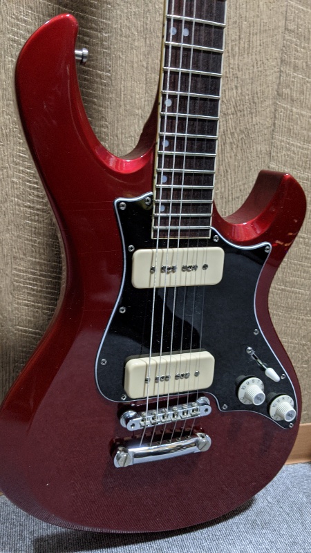 P-90搭載により、今回ピックガードから内部配線まで全て新規でのやり直しとノイズ処理も丁寧にされていることも合わさってか、大音量や普段の歪みでも全くハウる事はありませんでした。