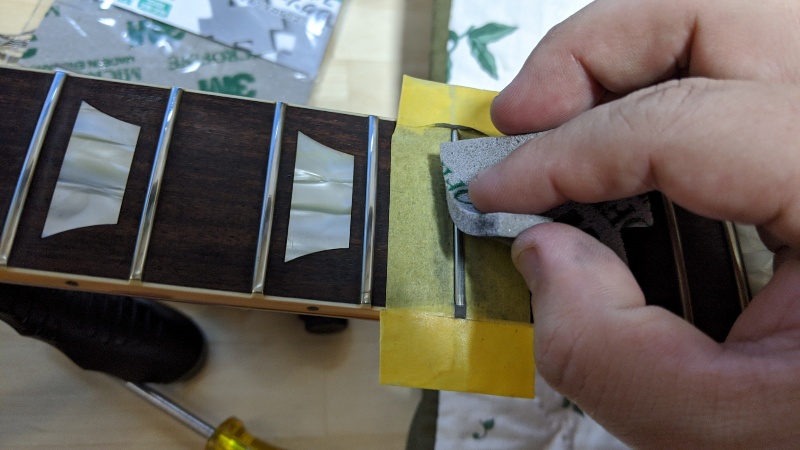 マスキングテープで簡単に指板の保護をして早速使用開始。