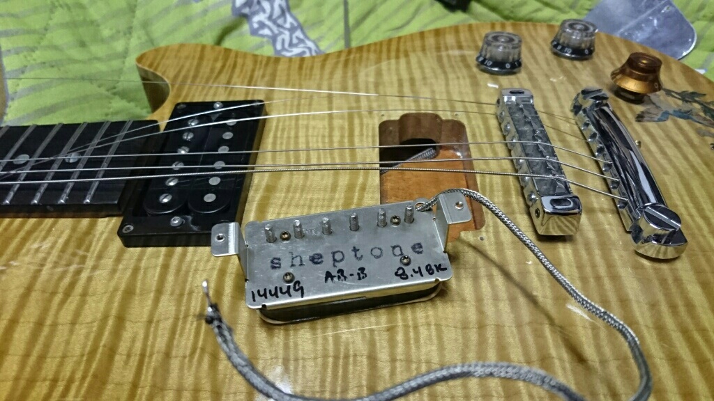 最初はBaker BJ Eliteのピックアップを気になっているSuhr Thornbuckerにしようかと思いましたが、どうせならあんまり金をかけない方向でやろうと思い直し、まずはAutergoのリアを最近お気に入りのSheptoneのPAF AB Customを搭載させることに。