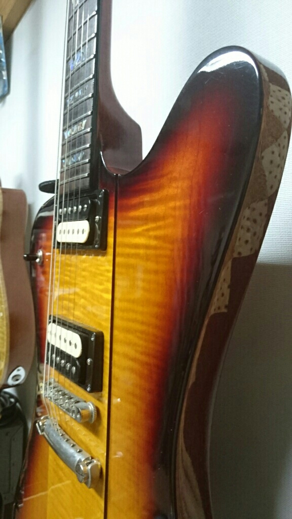 Gibson Victoryだったり、Gibson 1958 Les Paulだったり、Gibson Les Paul Custom Liteだったり、Orville by Gibson Les Paulだったり、Musicman Axis Sport BFRだったり、Baker BJ Korinaだったり、b3 fire SL Korinaだったり(´・ω:;.:...