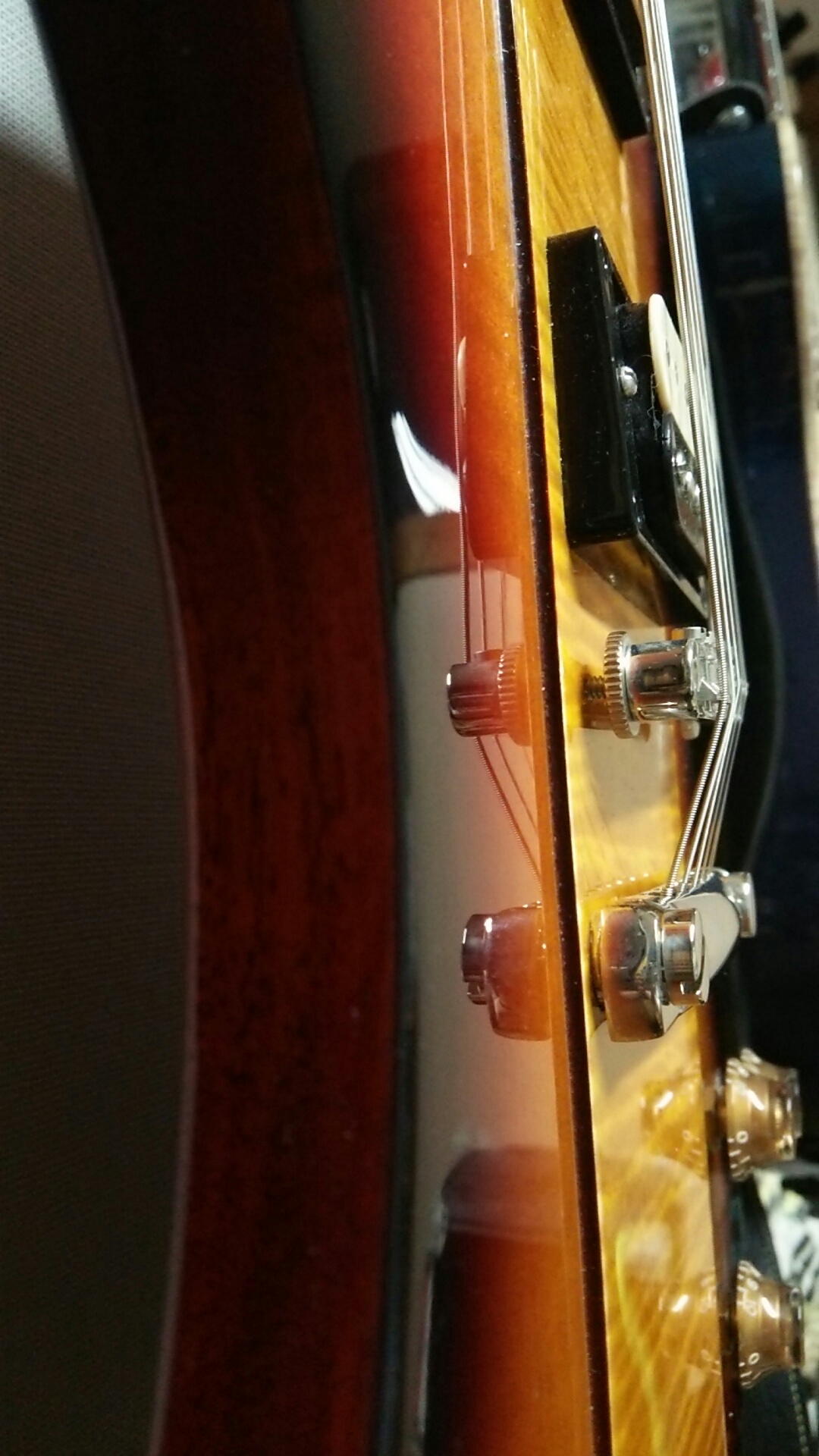 ここ数年間は、同じストップテイルピースのBakerやオリジナルギターではブリッジがロック式になってるので弦高が意図せずに変わるという事がなかったんですよね(ノ∀`)
