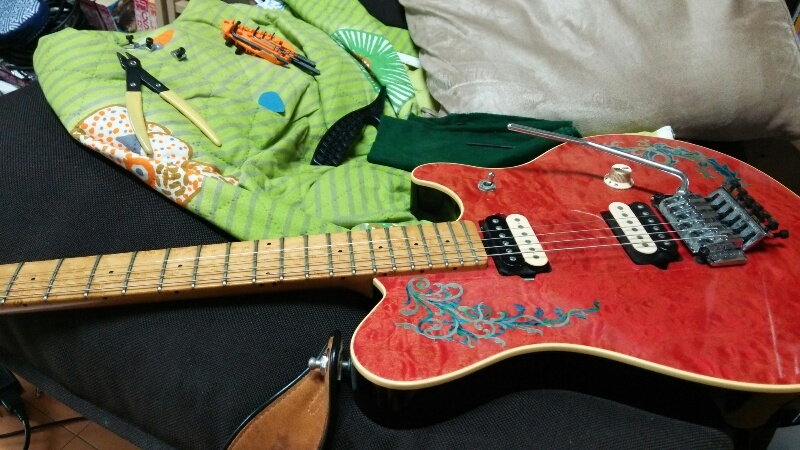 後は弾いててもう少し歪みが欲しいから、もしかするとこの後リアだけピックアップ変更はするかも。