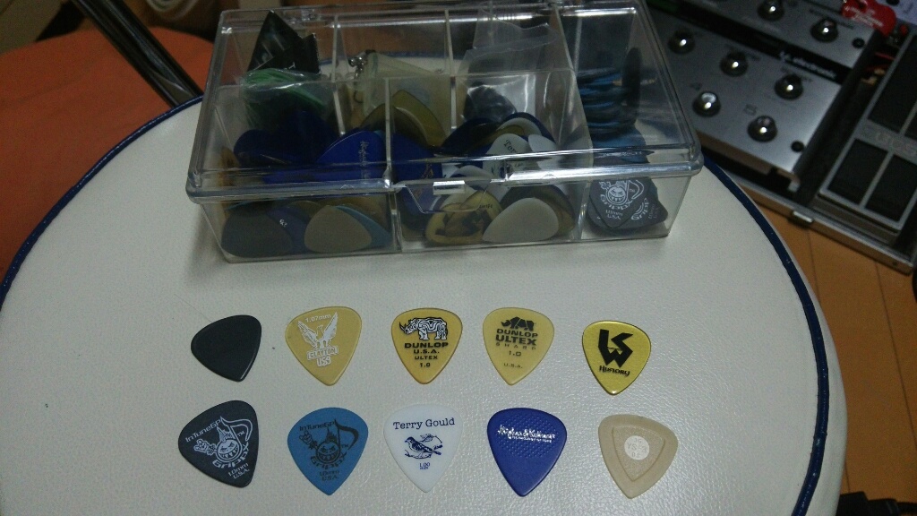 このところ、Bakerにはヒューケトの0.88ミリ、NF3にはIn Tuneのジャンボジャス1.00ミリ、Autergoには渡辺香津美シグネチャーとJim Dunlopのウルテムシャープ1.00ミリ、'79ストラトにはEssetipicksのEASY Mini、エレアコにはIKMのアコギ用ピックを使用中。